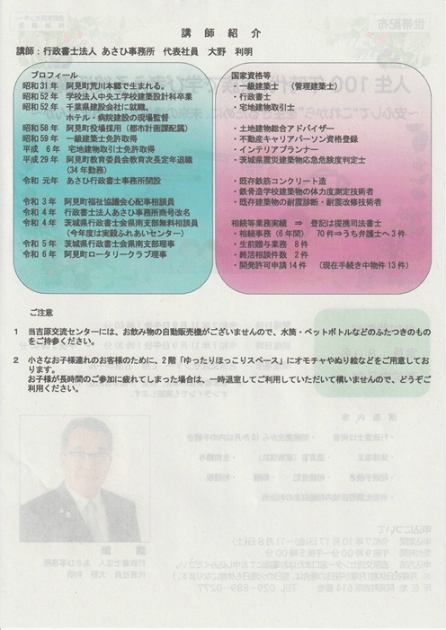 人生100年時代、家族で学び考える終活講座~吉原交流センター~会場日時 :令和7年11月9日(日)午後1時00分開催日時 :令和7年11月9日(日)午後1時30分~午後3時00分開催場所 :吉原交流センター 2階 吉原ホール定 員 :80名 事前申込制申込期間 :令和7年10月17日(金)~11月8日(土)詳細は、チラシをご覧ください